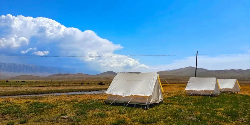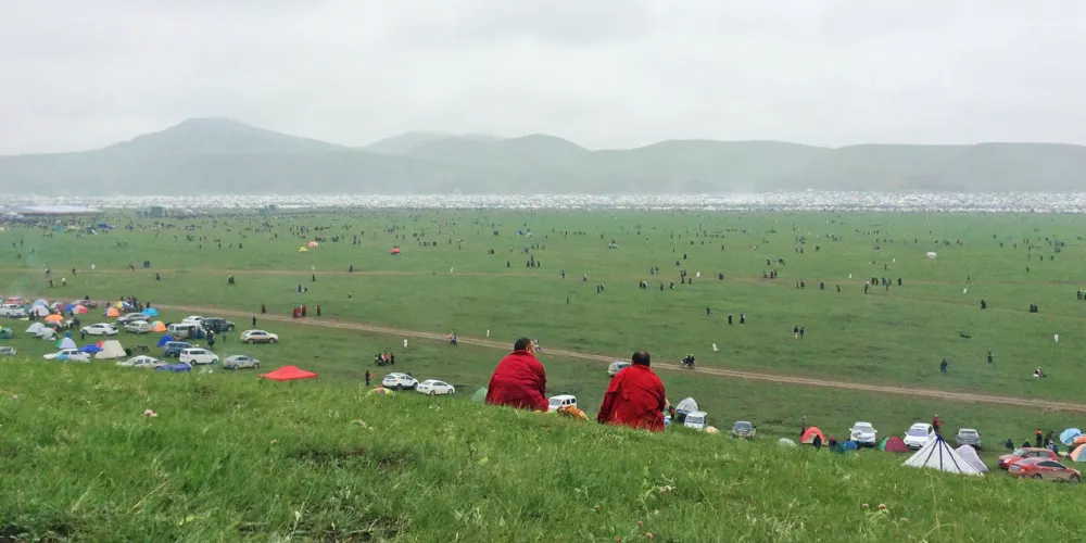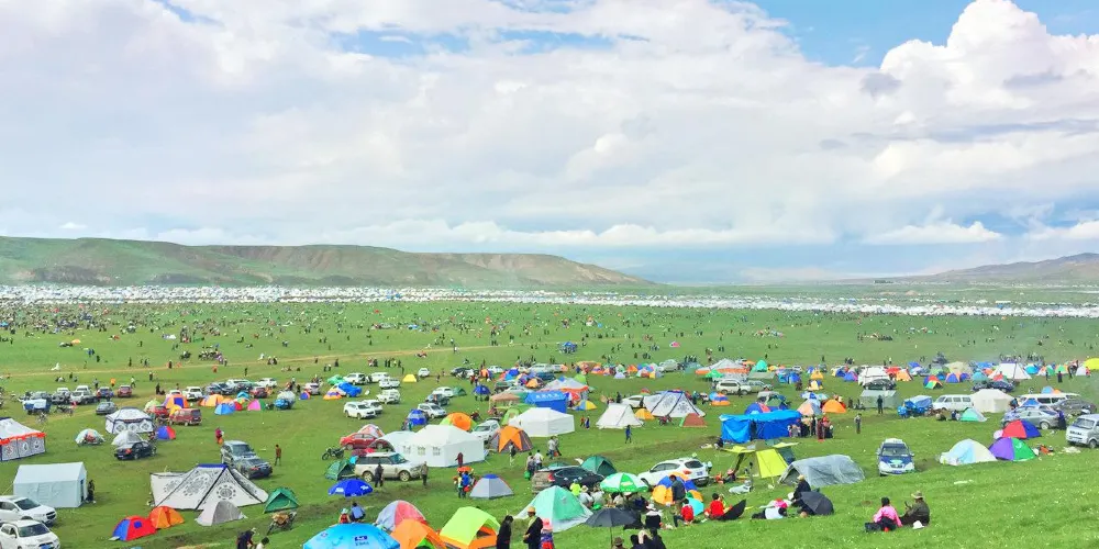 在這裏,沒有商業化的影子,有的衹是藍天、白雲、草原渾然一體,可以切身體會到草原的廣袤和寧靜。央曲河和央拉河蜿轉流淌,猶如一條潔白的哈達飄落在草原上,構成了一幅美麗的彩色油畫。