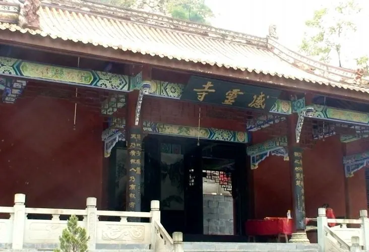 感靈寺意為:天人感應、心誠則靈。而在寺對面山壁上則天然生長着三個天然的佛像,左拜觀音,右拜佛,上拜彌勒佛,讓人歎為觀止,眾多遊客説此地許願特別靈驗,凡來旅遊的遊客都要在此朝拜,並有許多人實現了願望後紛紛來此還願,留下了千古神話,搏得了“光霧天下靈”之美譽。