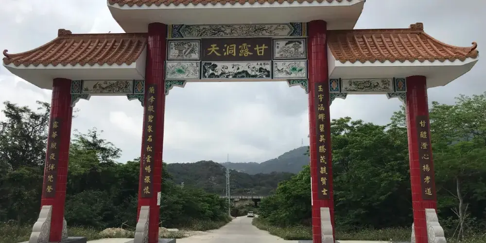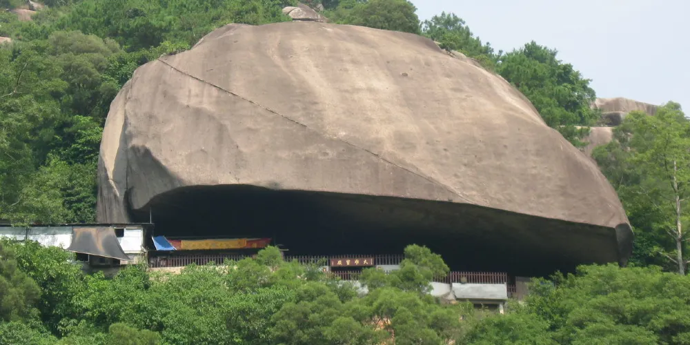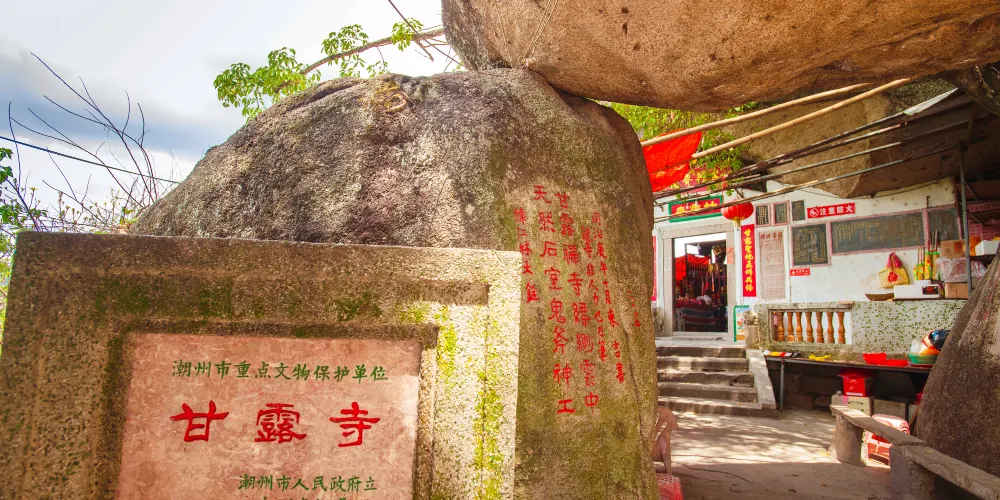 甘露寺位於廣東省潮州市,始建於北宋治平年間。甘露寺的寺門由三塊品字型的巨石疊成,“玉簡書院”、“甘露洞天”的題刻依稀可辨。甘露寺的上蓋是一塊凌空飛出的底平如削的巨石,蔚為奇觀。