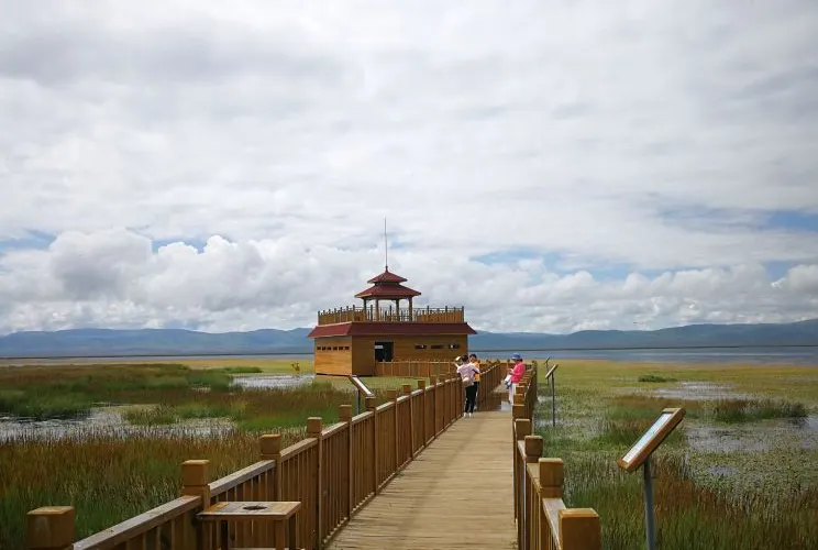 整個甘肅尕海則岔自然保護區-尕海湖面積很大,開發為景點的部分位於北側。從其他地方雖然也可以看到湖泊,但是很難靠近,而且景觀一般。景區大門到湖邊棧道有觀光車,之後便可沿著棧道遊玩,前行走到湖邊再從另外一邊返回即可,整個遊玩時間約1-2小時。