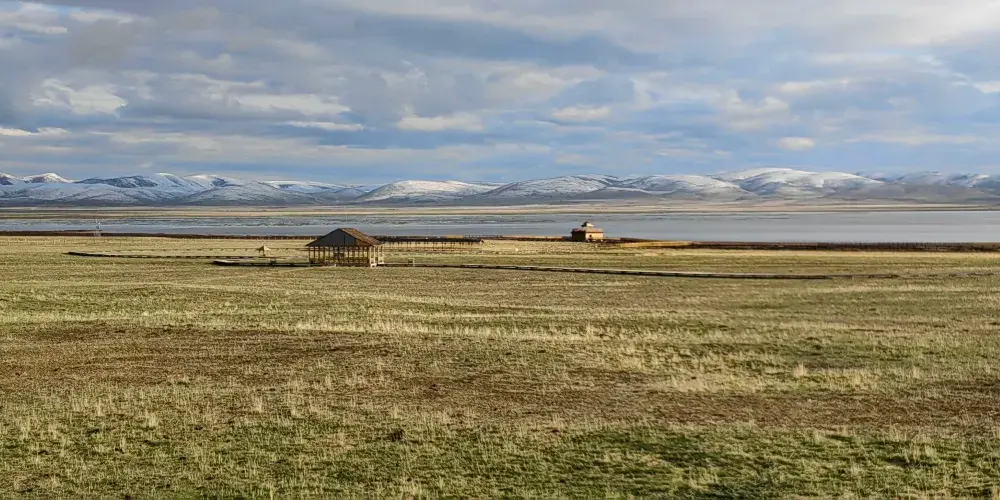 沿著草原走近湖泊,湖邊也蓋了一棟二樓的小樓,樓頂是瞭望台。登上瞭望台,便可以看到碧波萬公頃的甘肅尕海則岔自然保護區-尕海湖,湖面雖然沒有很多高原湖泊那樣蔚藍清澈,但是湖中倒影還是讓人感覺心曠神怡,尤其晴天時風景很美。在瞭望台上還可以看到許多水鳥在湖中游盪,還有鳥兒定在空中然後俯衝捕魚的畫面,十分有趣。在瞭望台拍攝之後便可以沿著棧道返回景區門口。