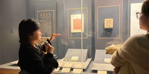 甘肅彩陶展同樣設於三樓,一踏入展館彷彿穿越至遠古部落,復原的茅草屋與正在勞作的部落人群栩栩如生。展館內的人像逼真至極,近看甚至會產生真人錯覺。館內陳列了馬家窯文化、齊家文化、仰韶文化等距今四五千年的陶器珍品,雖歷經數千年,當時的陶器已展現精湛工藝——無論是繁複紋飾或獨特器形皆令人驚嘆,值得細細品味。