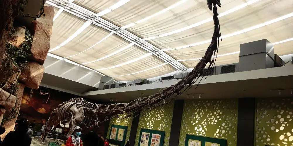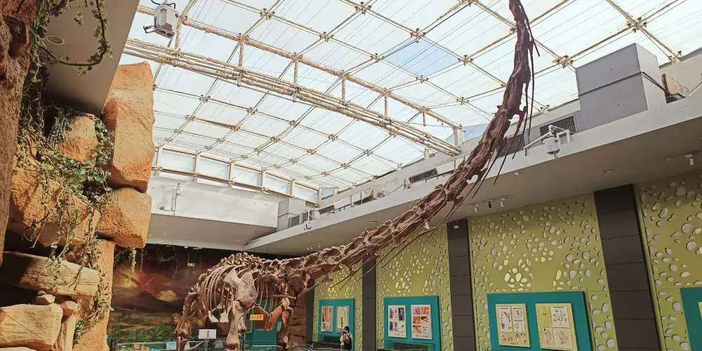 古生物主題展分為兩個展館,二樓的是化石展,裡面展示了恐龍等古代生物的化石,較有名的是黃河古象化石,是我國先進發現較大的古象化石。三樓的則是古象和恐龍的模型展,走進展館好像置身於恐龍世界,小朋友們會比較喜歡。位於二樓的紅色甘肅主題展館則展示了革命時期南梁根據地和陝甘寧邊區的革命文物,可以前去觀看。