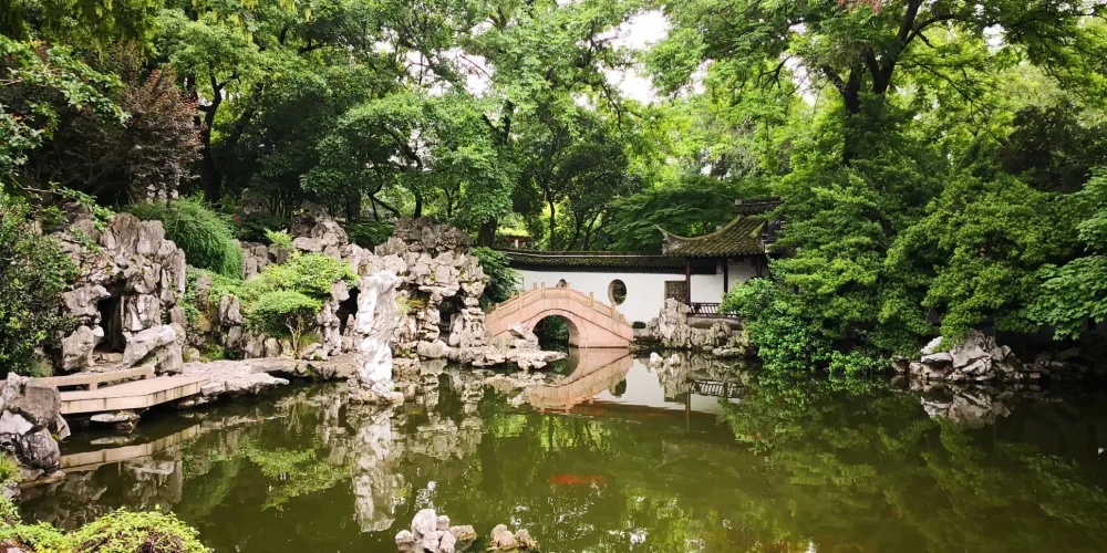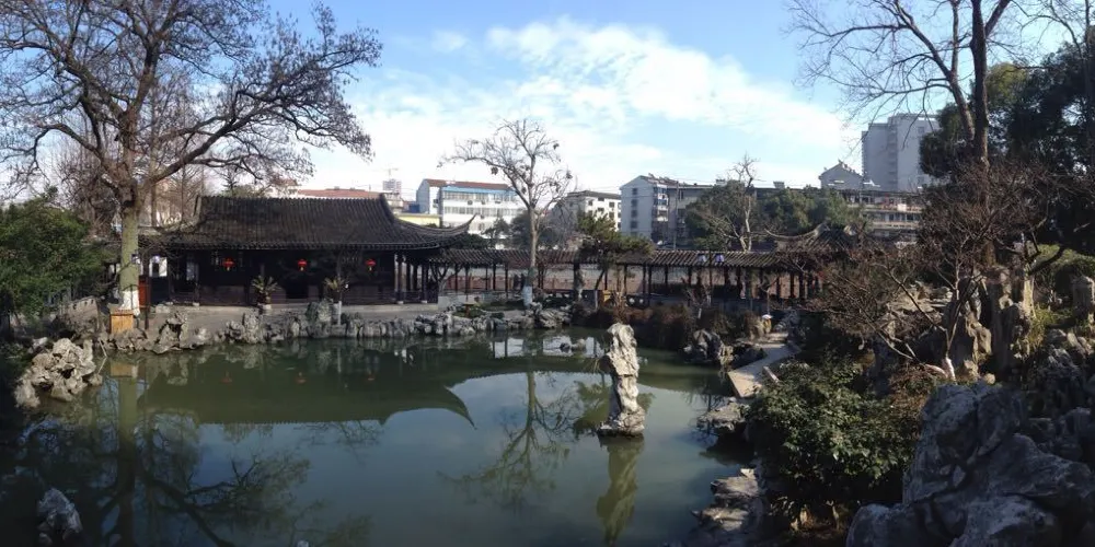 高靜園位於溧陽市區的城中河畔,建於1930年,原名溧陽公園,1987年重建,改名為高靜園。四面環水,有橋與陸地相連。這是一個小公園,因為佈局有蘇州園林的特點,所以環境優雅,池塘假山、亭閣長廊錯落有致,在園內散散步非常愜意。