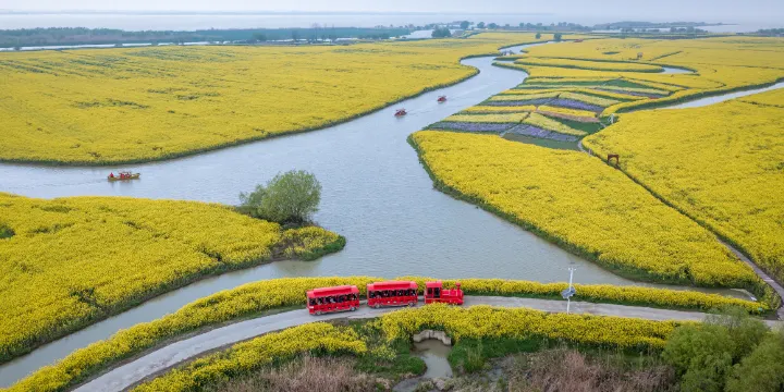 高郵·湖上花海,3月13日,盛大開園,園內有小火車,烏篷船,吃划艇,豐富的遊園體驗。處在水天相接的地方,核心區佔地2000多畝。致力於打造花海勝境、童年野趣、風土人情、美味特產,帶給你難忘、特別的遊園體驗。