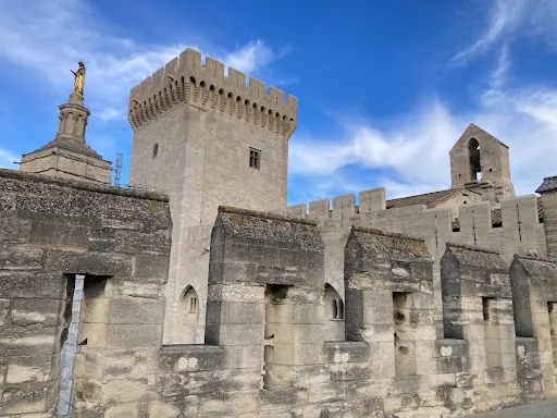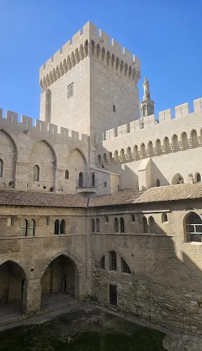 十四世紀,為了躲避派系爭鬥,當時的教皇在國王腓力四世的支援下,由羅馬遷都到阿維尼翁,修了這座教皇宮,並且先後有7位教皇在此居住。它是一座結合了宮殿與軍事要塞為一體的建築,矗立在古城的最高處。教皇宮殿分舊殿和新殿兩部分,舊殿樸實無華,屬羅馬建築風格;新殿富麗堂皇,為典型的哥特式建築。