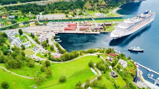 峽灣頂端是蓋朗厄爾村,到該村僅靠一條沿山坡蜿蜒而下的長1000米的道路,夏季徒步前來度假的遊客很多。村裡除1842年建造的蓋朗厄爾峽灣教堂外,還有攝影師經常光顧的福裡達爾斯尤威展望台和海拔1500米高的達爾斯尼巴展望台。周圍的景點還有位布裡克斯達爾冰川。