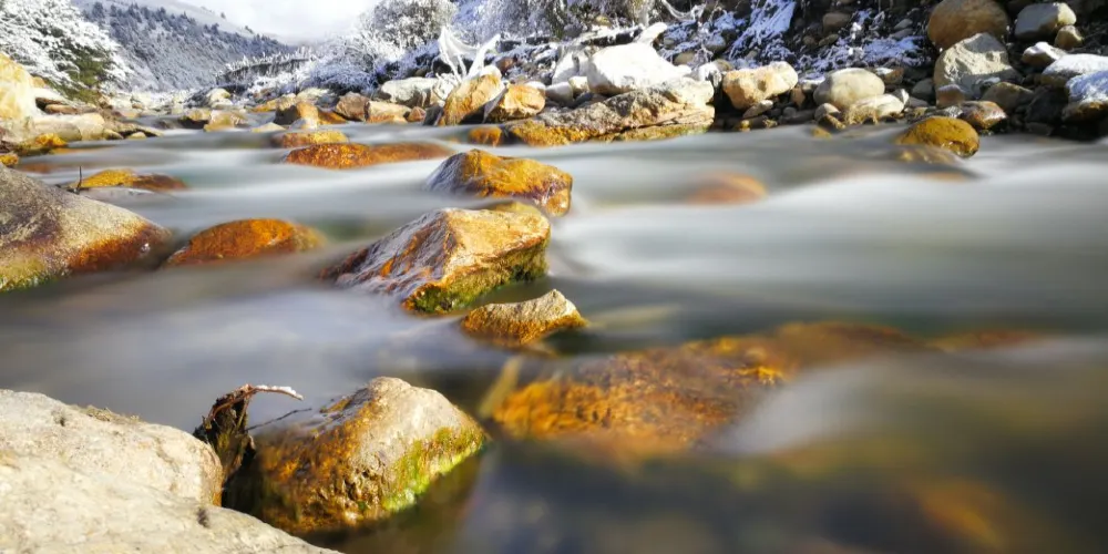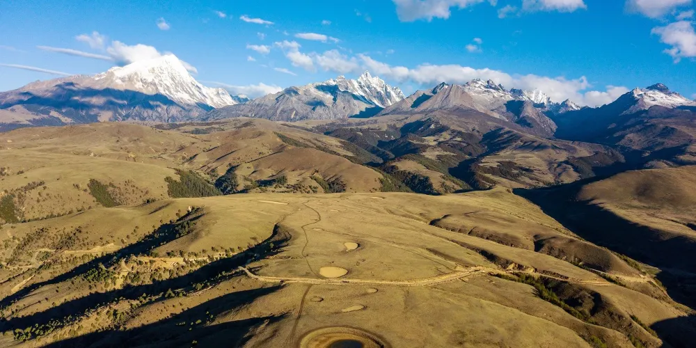 新冷古寺背靠格聶神山主峯,因山頂常年積雪不化,寺廟與雪山的融合,神聖而肅穆。寺院內還珍藏有格聶三寶:母鹿角、格薩爾時期的頭盔、格聶之心以及反轉海螺。