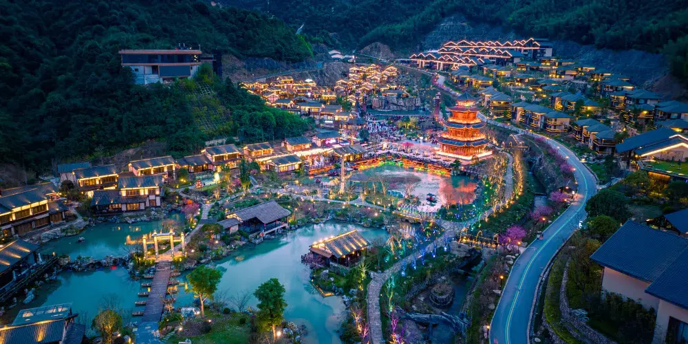 葛仙村度假區位於江西省上饒市鉛山縣,2016 年 6 月由鑫邦集團投資建設,目前已累計投資超15.69億 ,背靠千年道教名山葛仙山,定位以打造“江西旅遊新地標”為目標。項目分為兩期,規劃建築面積約30萬平方米,項目核心景區面積650畝,包括集散中心區、葛仙村度假區、天鏡台景區三大板塊,未來還將繼續延山谷向外發展。