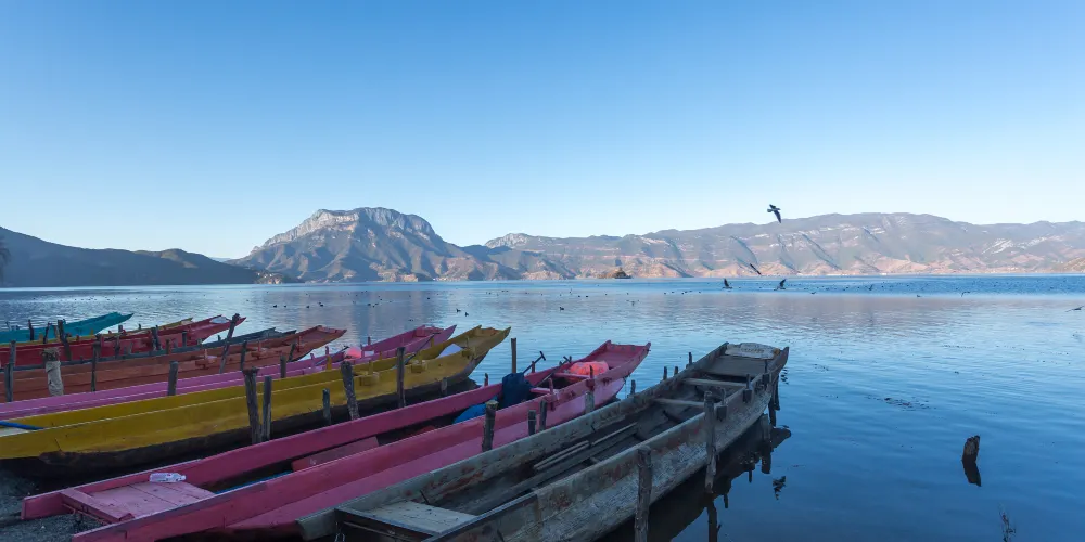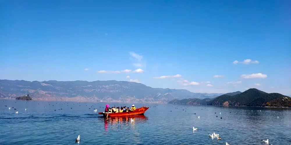 島上餐廳都能提供湖裡自產的魚類,銀魚炒蛋、烤魚等,都很不錯。喝喝當地獨有的蘇哩瑪酒、咣當酒,吃吃摩梭人烤製的烤乳豬,吃飽喝足曬曬太陽,像真正摩梭人一樣度過一天吧。