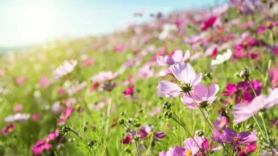 秋長華髮花海世界位於惠州市惠陽區秋長街道官山新屋2號。這200畝花海主要以格桑花、孔雀王、三角堇等品種為主。放眼望去,紅色、粉色和白色的成片格桑花隨風搖擺,耀眼又美麗。花海間還點綴了稻草玩偶、風車長廊等各式小景,吸引遊客前來觀賞。