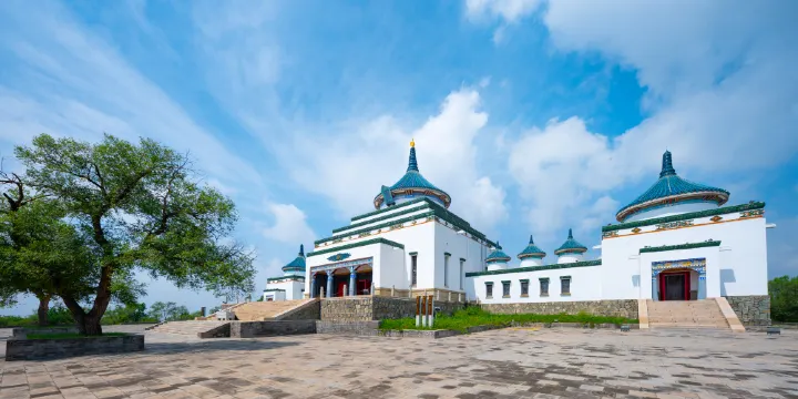 成吉思汗廟位於烏蘭浩特市城區北側罕山山頂,在罕山公園內,地址是烏蘭浩特市興安北大路82號。該廟建成於1944年,是全國唯一一座祭祀成吉思汗的廟宇。廟宇由藝術家耐勒爾設計,融蒙、漢、藏三個民族的建築風格於一體,採取古代漢族建築中慣用的中軸對稱布局手法,建築主體圓頂方身,綠帽白牆,具有典型的蒙、藏建築特色。在這裡還可俯瞰烏蘭浩特市全景。