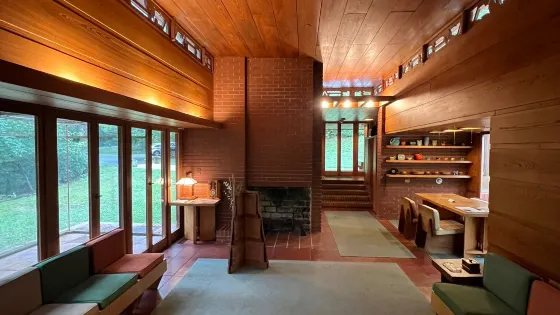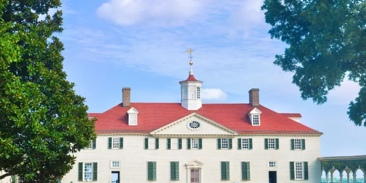 華盛頓故居是一幢紅頂白牆、兩層半的英國喬治式建築,樓前植有古槐和草坪,樸素無華。一樓起居室、大小餐廳和書房,均以華盛頓遺物佈置,二樓華盛頓夫婦的卧室很樸素,有鋪着花布床單的老式卧床、安樂椅、大圓鏡和木製衣箱。