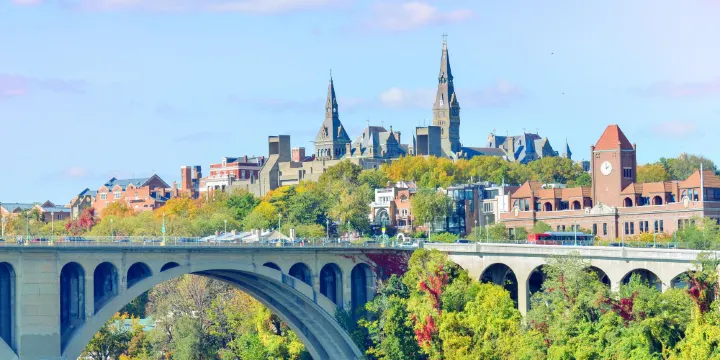 喬治城沿波托馬克河而建,保留了十八、十九世紀的建築風格,街頭上隨處可見噴泉和雕塑,河邊還舖有木板路,恰是閒情漫步的好去處。這裡不僅風景很美,中心地帶的威斯康辛大道更是被譽為華盛頓的購物天堂,美國頗具貴族氣質的喬治城大學也坐落於此。