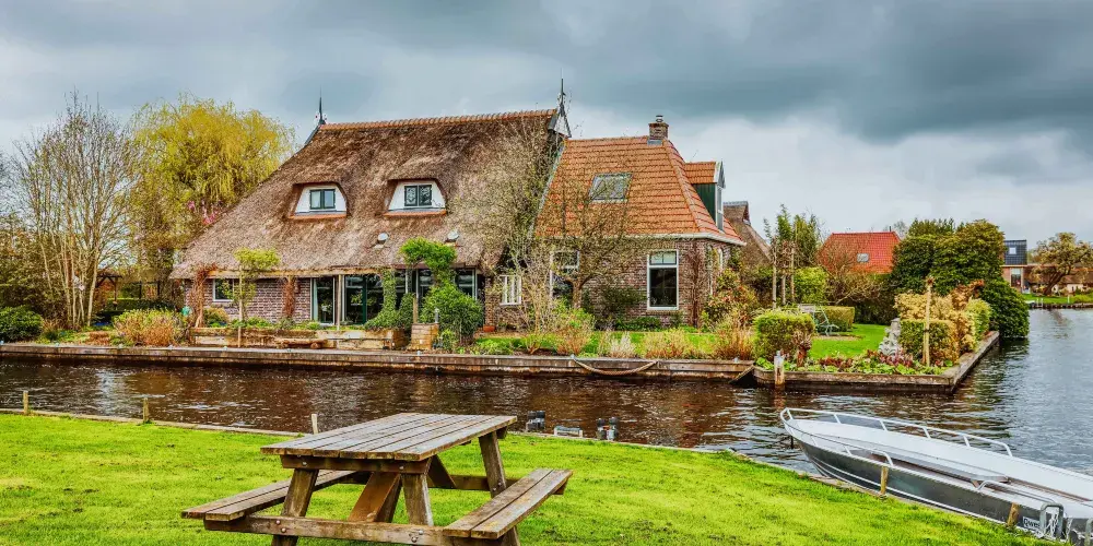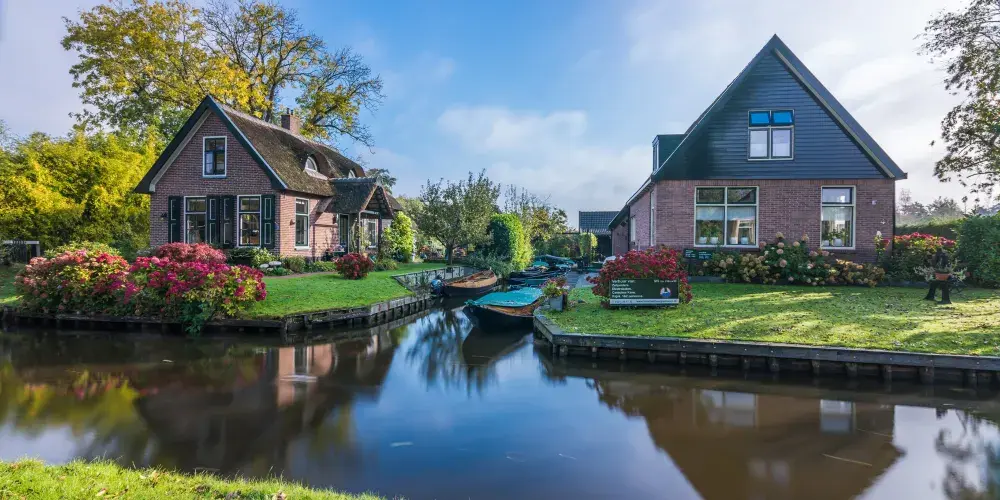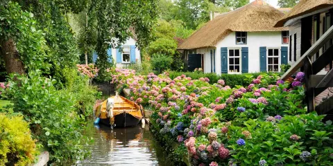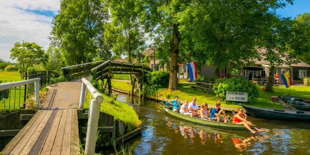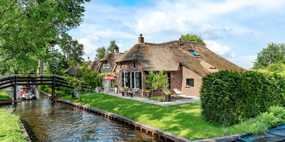 羊角村是屬於Weerribben-Wieden國家公園中的一座小村,在冰河時期De Wieden正好位在兩個冰磧帶之間,所以它的地勢相較於周邊來說比較低,造成土壤貧瘠且遍布泥炭沼澤,這裡除了蘆葦與薹屬植物外,幾乎沒有其他植物。但是正是由於這個原因成就了羊角村獨特的風景線。整個Weerribben-Wieden國家公園建於1882年,公園內至今保留了比較好的植被與野生動物。在公園的小河道裡可以泛舟湖上欣賞美景,很愜意。