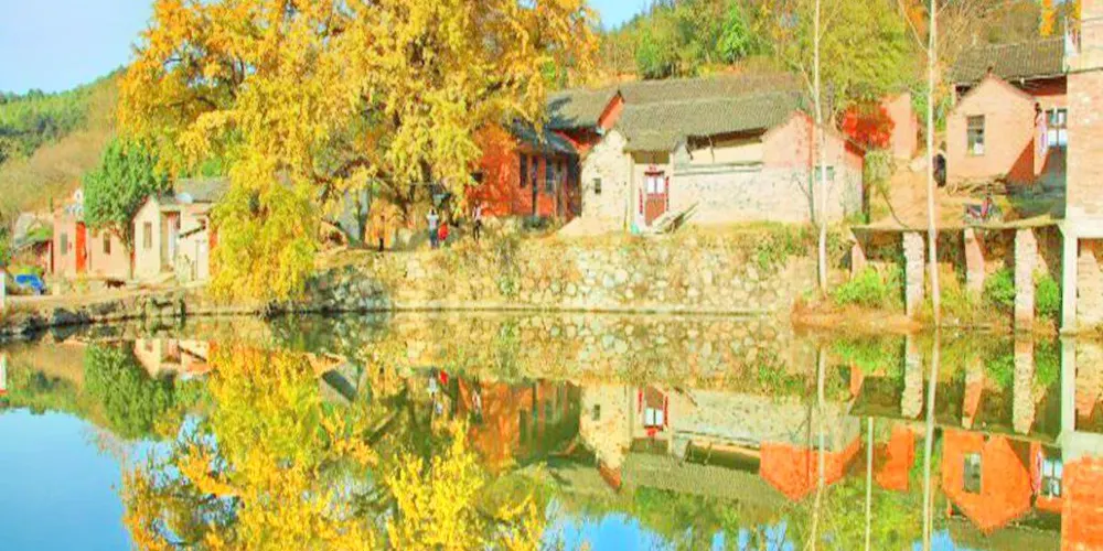 銀杏村村內有壯觀的古銀杏群,享有“中原銀杏村”的美稱。晚清時期,當地群眾為防止土匪入侵,老百姓自發修寨,寨主楊玉奇,修建了三道門、護城牆、炮樓,與土匪寨打油尖一河之隔,形成天然屏障,避免了土匪的欺凌攻占。紅軍攻打下打油尖後,各寨群眾搬回村里,迎接紅軍的到來。解放後村莊圍牆被拆除,至今還保留有殘垣斷壁。在金秋時節,漫山遍野的紅葉,將村子映襯的火紅紅一片。