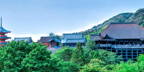 清水寺是代表京都的一座古老寺廟。 1994年登入為世界文化遺產。正殿因依山而建的舞台而聞名,已被指定為國寶。周圍綠樹成蔭,春季可賞櫻花,秋季可賞紅葉。清水寺是與金閣寺、嵐山一起代表京都的歷史地標。一年四季,不乏遊客、遊客。