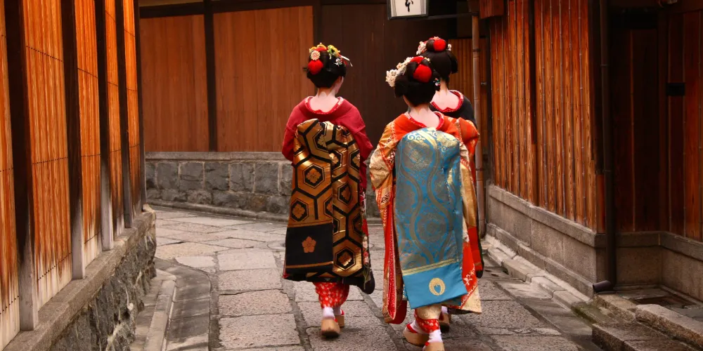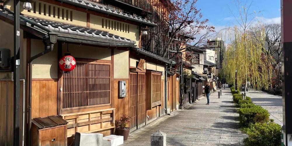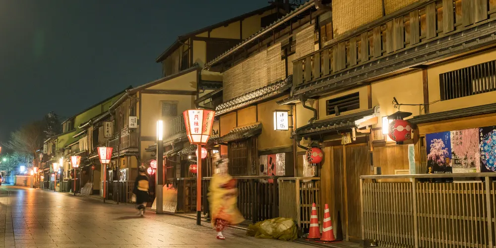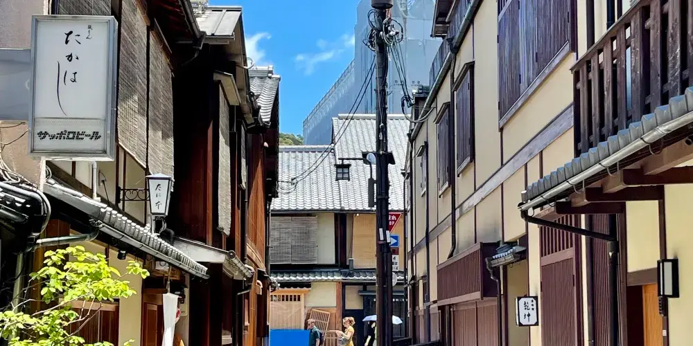 祗園位於八坂神社前、鴨川到東大路通之間的四條通沿街,是京都有名的藝伎區。白天你可以在茶室、餐廳裡消遣或逛逛土特產商店,到了傍晚燈籠閃爍時,還經常會碰到行色匆匆的藝伎與你擦肩而過。古樸的建築這裡的街道和建築大多維持著舊時的樣貌,是感受京都古韻的好地方。窄而深的木製町屋結構很有特色,從正面看起來只有5、6公尺寬的房子,很可能深達20多公尺。花見小路與四條通相交、一直延伸到建仁寺的花見小路是祇園人氣頗高的街道,你會看到一間間門面精巧、各具特色的茶屋、料理屋,有不少還是專做懷石料理的高級餐廳。透過木格窗與入口布簾的細縫,隱約可見屋內客人談笑的身影。白川運河北邊的白川運河是祇園另一處景色優美的地方,因為離四條通有一點距離,相比花見小路也要恬靜一些。運河的兩旁種滿了柳樹,散起步來氣氛很不錯。沿路散佈著多間高級的茶屋、餐館,有些還能俯瞰運河景觀。邂逅藝伎很多遊客到訪祗園都是為了一睹藝伎的風采。如果你在日落時分來到祇園,可能會偶遇到盛裝打扮、匆忙趕往茶屋的藝伎。她們並非直接聯絡客人,而是透過提供會面場所的私人茶屋來表演日本傳統舞蹈。欣賞藝伎表演在高級茶屋中用餐並欣賞藝伎表演可謂價格不菲,不過祗園也有個能讓你更容易體驗藝伎文化的去處-花見小路南端附近的祗園角。這是一場表演京都傳統藝能的劇場,內容包括京舞、花道、茶道、琴、雅樂、狂言、文樂等,可以讓你在一場演出中感受到京都豐富的傳統文化。