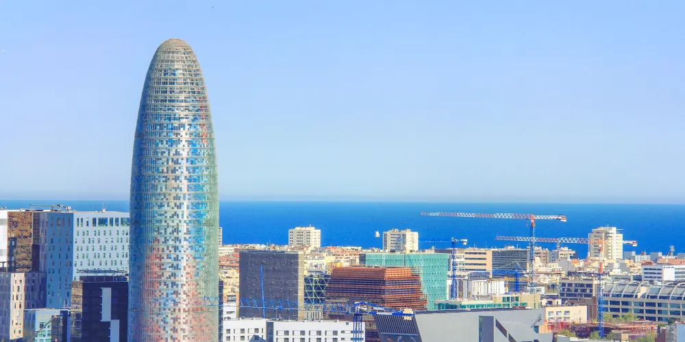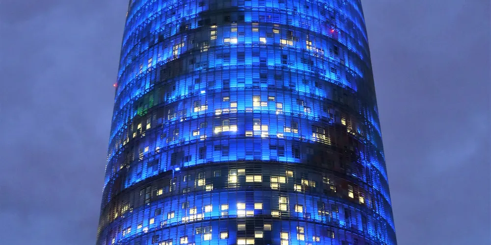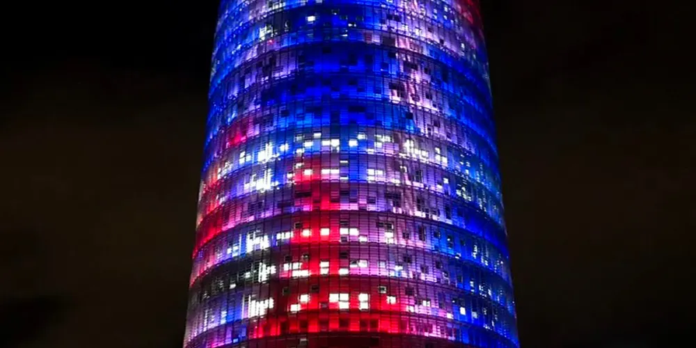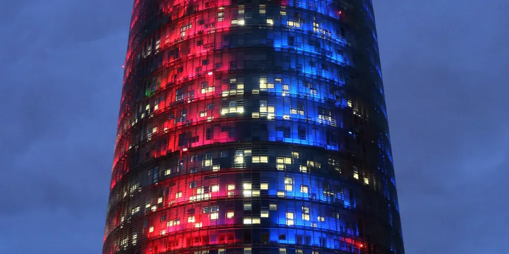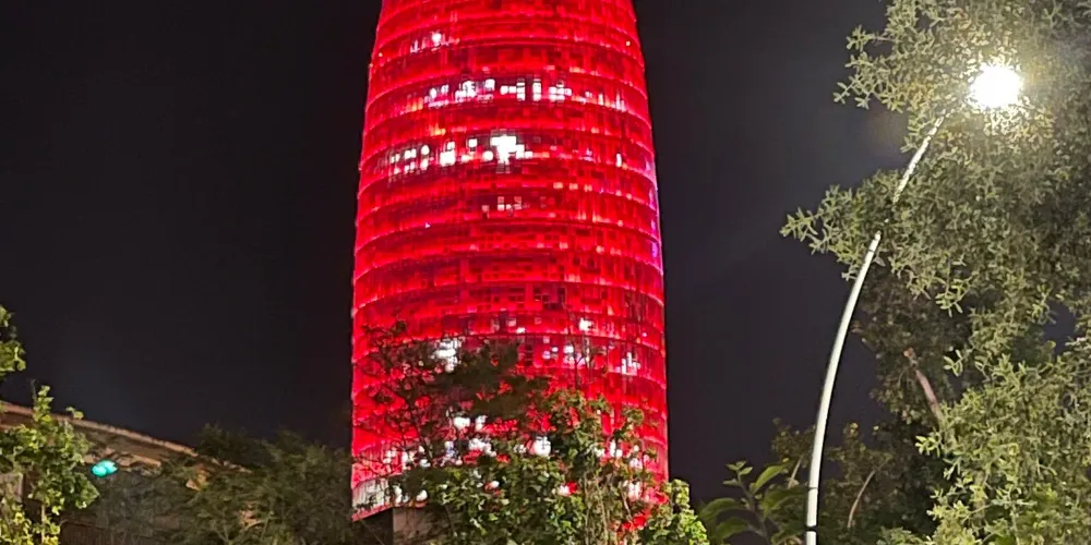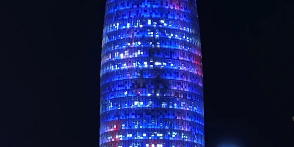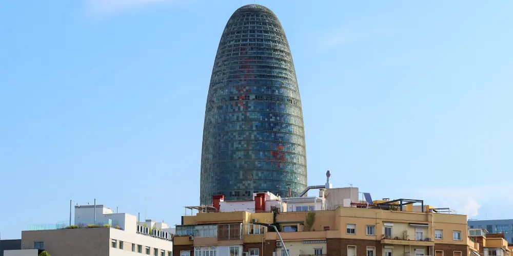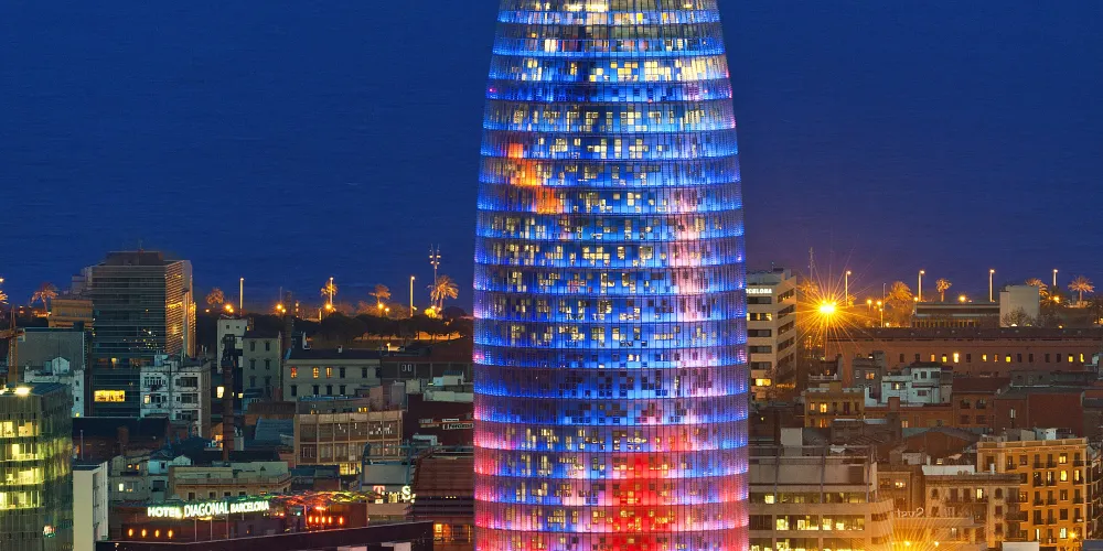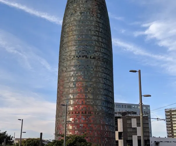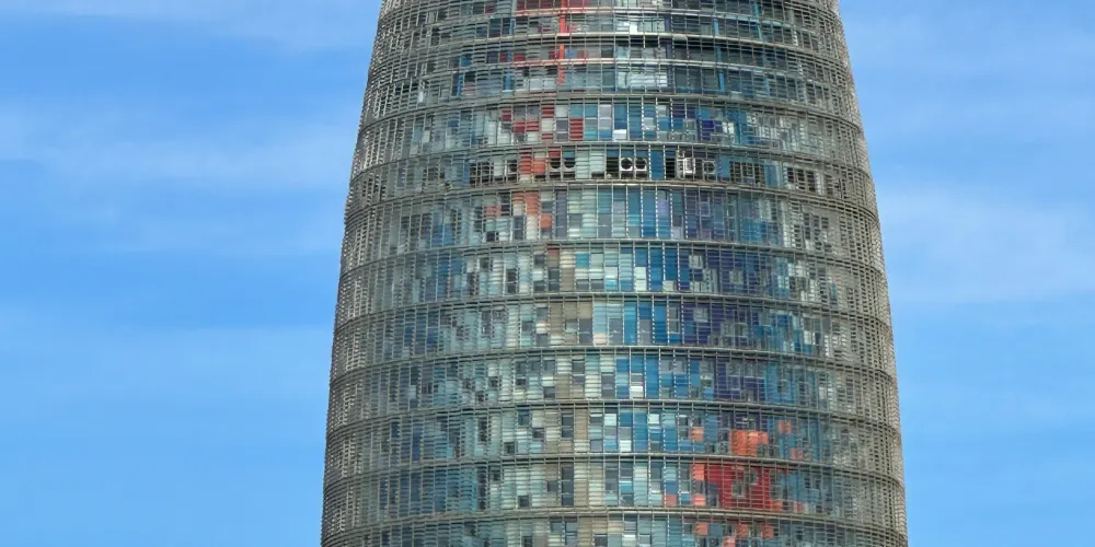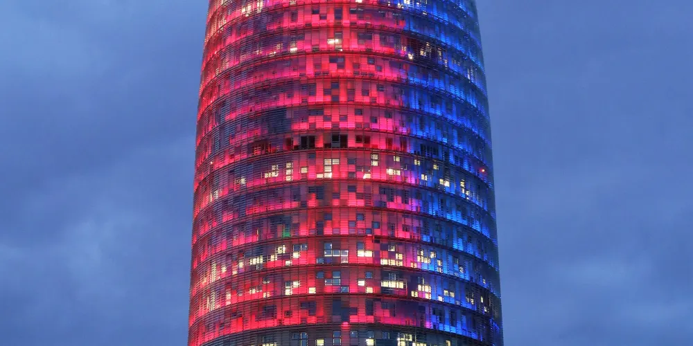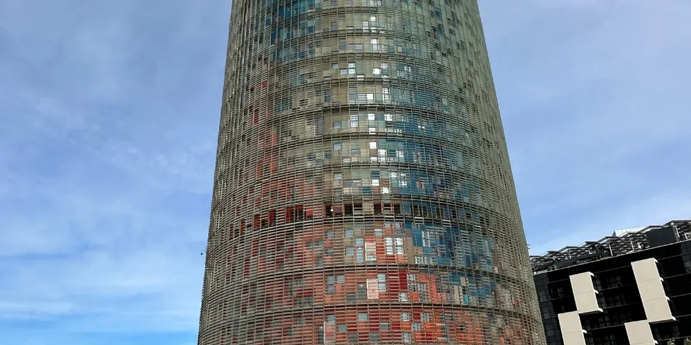 ▲ 其獨特的子彈頭形狀和色彩斑斕的外立面,使其在巴塞隆拿的天際線中脫穎而出。榮耀塔的外牆由玻璃和鋁製成,白天在陽光下閃閃發光