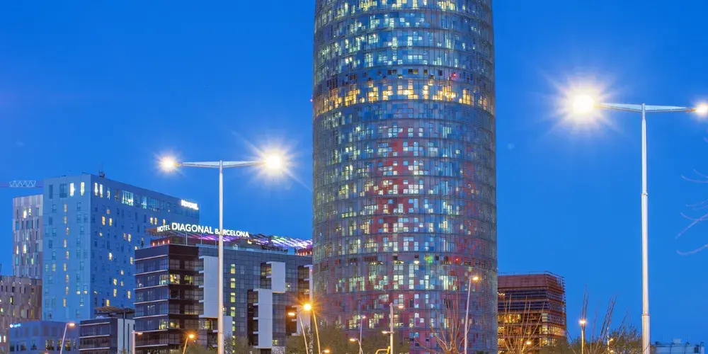榮耀塔像一枚墜入城市肌理的異星結晶,讓·努維爾以顛覆性的幾何語言將聖家堂的尖頂與蒙特惠奇山的噴泉揉碎重組。38層鋁製鱗片在加泰羅尼亞的陽光下折射出液態金屬般的光澤。這座144米的未來生物並非冰冷的辦公容器——其混凝土核心筒內嵌的雨水回收系統與自然通風設計,暗藏著地中海氣候的生存智慧。底層「魔方」展廳常以先鋒裝置解構建築邊界,當遊客仰頭凝視那些隨氣流微微顫動的玻璃幕牆,彷彿目睹城市正以科技為筆,在天空書寫新的神話。