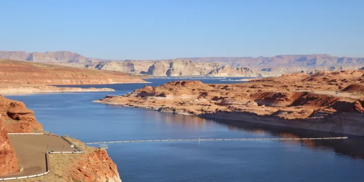 格倫峽谷大壩是美國第二大水壩,由舊時將軍格蘭建造,凌駕於格蘭峽谷之上,其216公尺高的弧形壩體與赭紅色砂岩峽谷形成震撼對比。