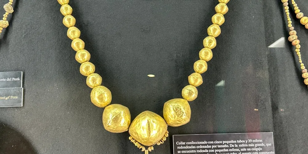 黃金博物館位於秘魯利馬,是展示古代秘魯文明精湛工藝的寶庫。博物館收藏了大量珍貴的黃金製品,包括精美的面具、飾品和儀式用具,展現了古代安第斯文化的輝煌。除了黃金製品,博物館還展出各種武器和紡織品,提供了對秘魯歷史和文化的全面了解。