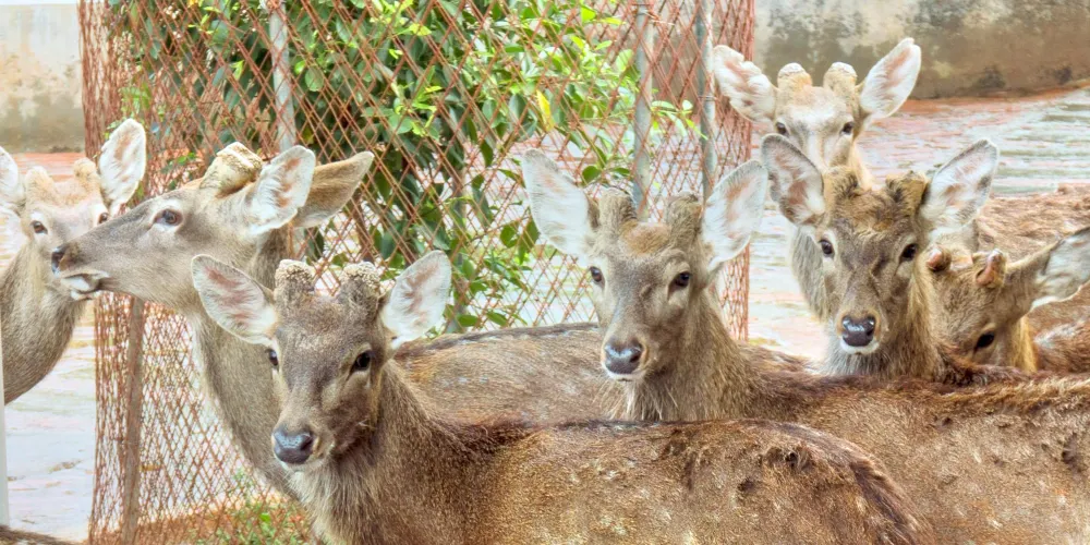 金鹿園位於湛江市麻章區湖光鎮湖光岩北路,是華南地區頗具規模的養鹿基地和種鹿供應基地,堪稱全國動物養殖基地的示範園區,也是許多人到湛江旅遊的必去之處。園內養殖的梅花鹿性情溫馴,毛色十分有質感,極富觀賞性,園區中,遊人可以享受逗鹿、餵鹿的樂趣,也可以在產品展銷部購買鹿酒、鹿茸、鹿鞭等副產品。