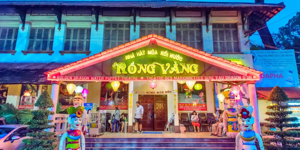 金龍水上木偶劇院是越南比較有特色的傳統民間舞台戲之一,至今已有八百多年曆史。雖然“水上木偶”起源於越北,但非常受外來游客的歡迎,所以在過去十年裡也已慢慢遷移到胡志明市。表演方式是在水池上搭起舞台,由隱藏在後台浸泡於水中的演員用長線或竹竿操縱木偶,左右伴奏現場唱念做打,讓木偶生靈活現的演繹出各種越南民間傳說故事。
