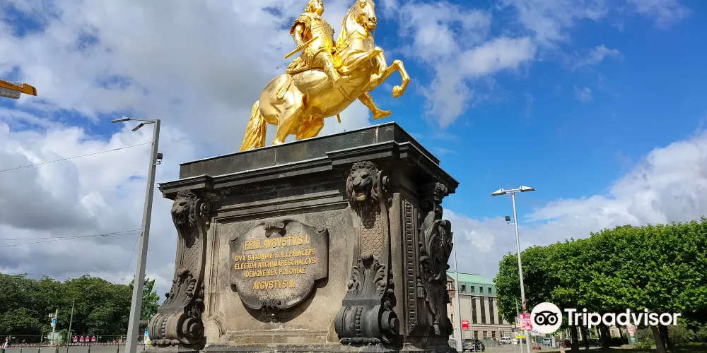 從德累斯頓老城區的老橋走向新城區,就能看到位於新城廣場、著名的的奧古斯都二世的金色騎馬雕像,這座雕像表現出奧古斯都二世從德累斯頓大街出發前往華沙兼任波蘭國王的場景。