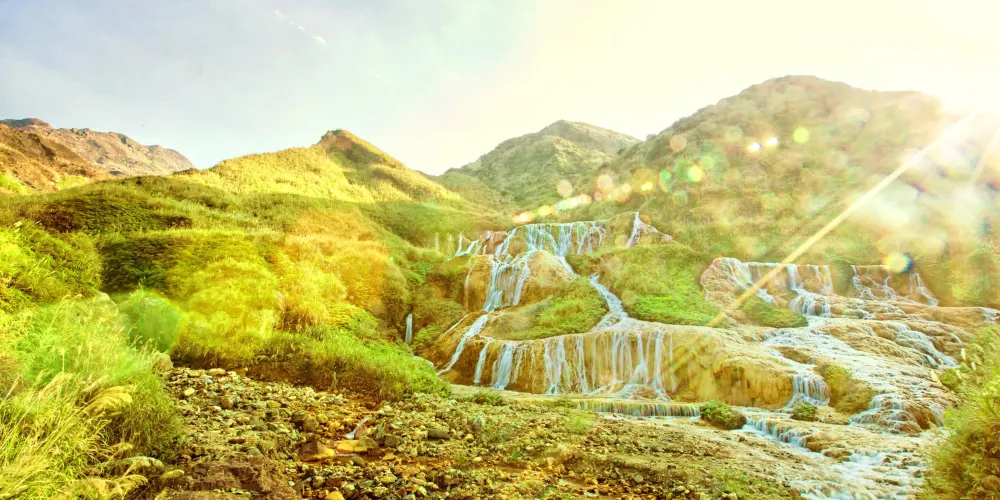 陰陽海是一個獨特的自然景觀,以其海水呈現出金黃色和藍色對比而聞名。這現像是由於礦物質從附近山坡流入海中,與海水混合形成的。陰陽海的奇特景觀吸引了許多遊客和攝影愛好者。