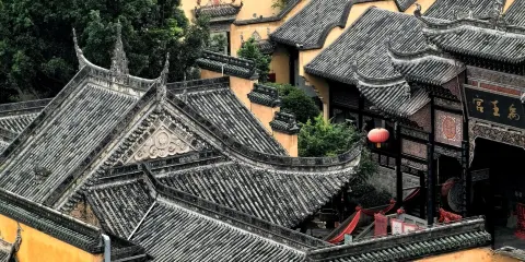 則評價人民大禮堂位於重慶繁華的人民路,是一個精美的仿古民族建築群,也是重慶的標誌建築物之一。大禮堂採用了明清的建築風格,在外觀上仿造北京天壇祈年殿,用傳統的中軸線來對稱。如今大禮堂是劇院和會議中心,是重慶人代、黨代會召開的地方。