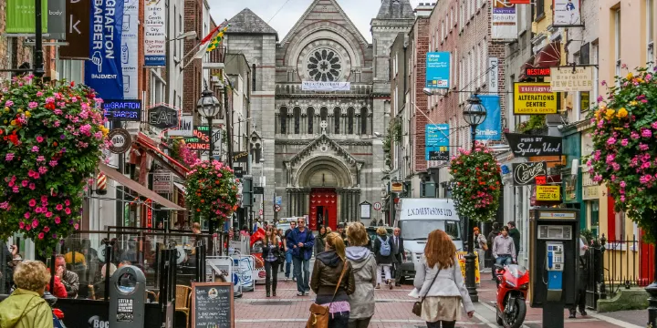 都柏林的格拉夫頓街(GraftonStreet)及其周邊地區是當地比較高檔的商業街區,街道兩旁是各色精品商店和時尚小店,都柏林的時尚小店多數都集中在這裏,而如果你想要品嚐一下經典的愛爾蘭咖啡的話,這裏也有許多咖啡館可供選擇。天氣晴好的時候,可以在街上看到不同的街頭藝人的表演,有時甚至會持續到深夜。都柏林的市中心以格拉夫頓為軸,逐漸蔓延向周遭的景點。市中心的商店通常每逢週四會關的比較晚,大多數商店在週一到週六營業的時間是早上9點到晚上6點,而週日則從12點到晚上6點。