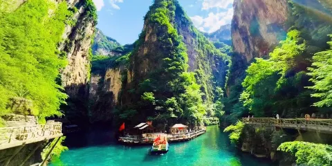 山西與河南交界處的太行山大峽谷,主要景點有八泉峽、紅豆峽、青龍峽、黑龍潭和紫團山等,整座峽谷就是一個天然大氧吧,茂盛的樹木隨處可見,還有清澈的溪水從高高的崖璧中飛瀉而下,形成令人神往的瀑布。峽谷中的景點之間相距較遠,遊玩時可以乘坐景區提供的電瓶車、遊船、索道、電梯等交通工具。