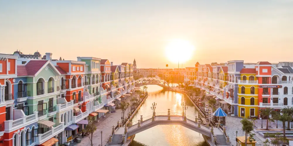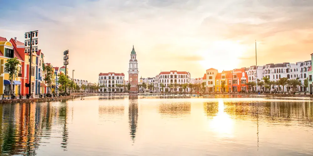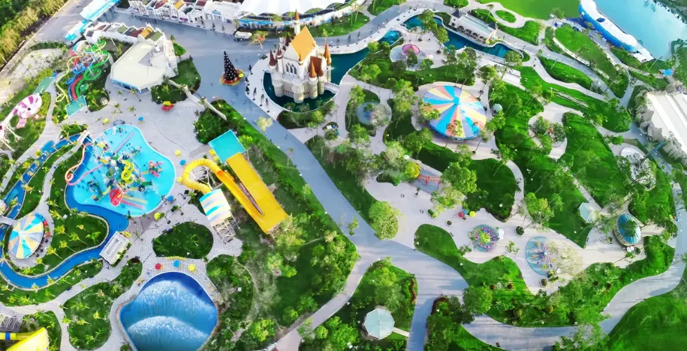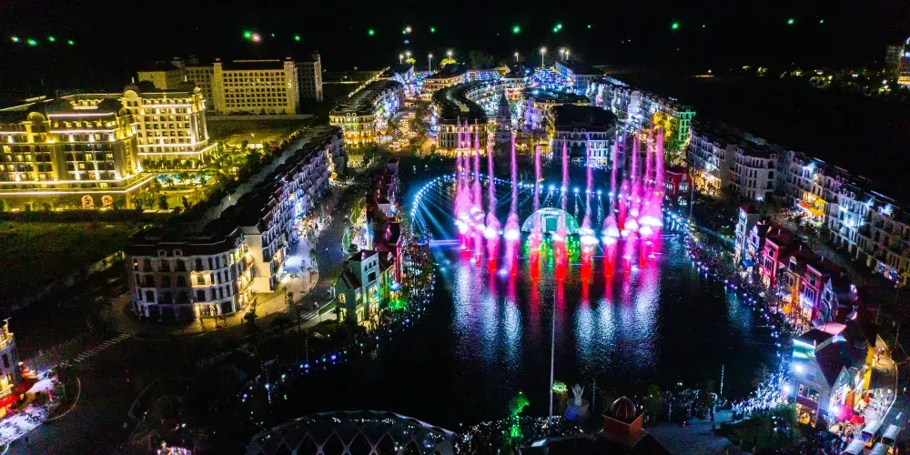 富國大世界佔地85公頃,地處中心位置,擁有眾多金碧輝煌的建築作品,繁華時尚的商業街。除此之外,還有數百個令人興奮的節日和派對,再現了威尼斯、上海、夜市、K街、越南等一系列繁華的娛樂中心……所有這些都24小時不間斷運作。每天,365天全年無休,營造出一個繁華的圈子和無盡的節日空間,充滿活力,類似於世界著名的不夜城。