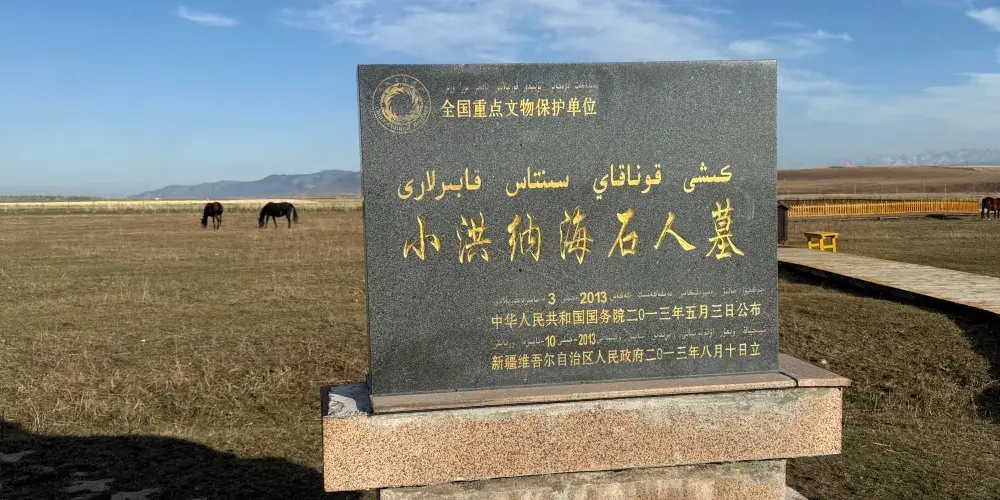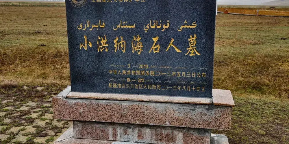 草原石人是亞歐大草原上一種重要的文化遺迹,近百年來,中外學者進行了大量研究。據國內和日、英、法、德等國家學者考證,分布在昭蘇大草原上的石人,系隋唐時突厥遊牧民族的的墓前石人。其中一尊小洪納海石人高230厘米,面東而立,雙手抱置胸前,右手似執有硫、盞之類東西,頭髮多辮,分技在身後,腰間刻有古代民族文字。2013年國務院公布為第七批全國重點文物保護單位,國家2A級景區。