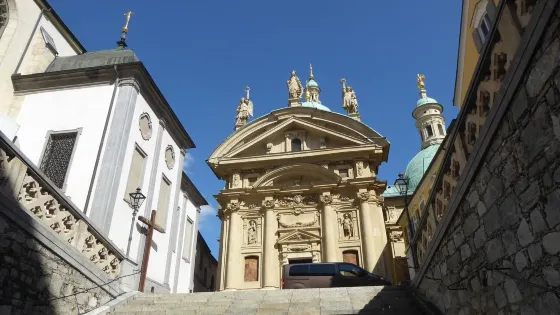 距離市中心331米樓梯建於1499年,有着其獨特的風格,現在已經是哈布斯堡皇帝弗裏特利希三世時代遺留下來的一處歷史古蹟。樓梯在現代也算得上的是超現代的風格,更別提500年前了,着實是一件先鋒藝術品。