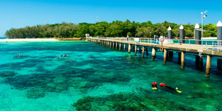 綠島位於大堡礁區域,距離凱恩斯約45分鐘航程,是一座整體面積不大卻分佈著大片熱帶雨林的珊瑚礁島嶼,歷經6000多年歲月形成的。繞行綠島一圈僅需1個多小時。乘船抵達綠島後,可自行漫步雨林,還可選擇潛水或者選擇乘坐玻璃底船出海觀看多姿多彩的珊瑚礁。水上滑翔傘、乘直升飛機遊覽和海底漫步,也都很流行。