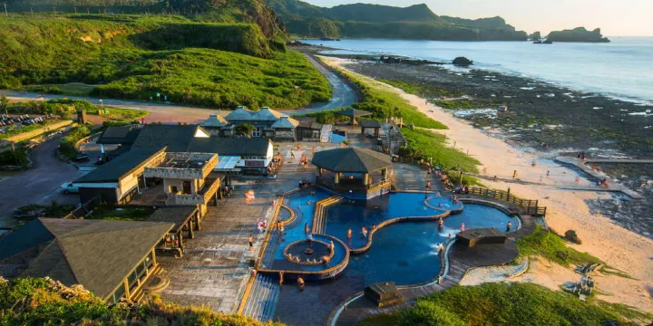 綠島朝日温泉約可容納300名遊客,室內擁有齊全的水療設備;温泉區靠海的地方設有三個圓形露天浴池,以及半戶外式泡湯池、大型游泳池,浴池的水隨著漲潮與退潮溫度會產生變化,形成天然的三溫暖。