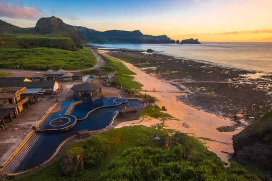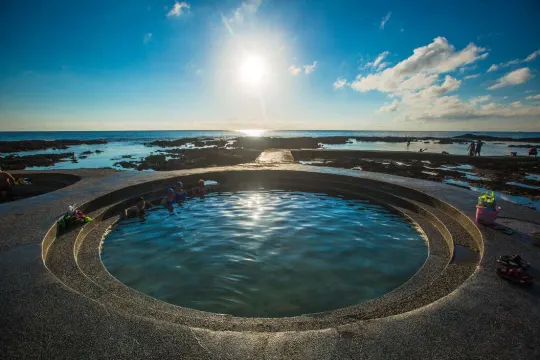 綠島朝日温泉為罕見的海底温泉,位在綠島東南方帆船鼻礁岩潮間帶,因溫泉面對太平洋,可以看見太陽緩緩從海面上升起,在日治時期有著「旭溫泉」的美名。除了在晨間泡湯觀看日出之外,夜晚能靜聽海濤聲,欣賞滿天星斗,或親自以海底溫泉煮出滋味特別的各種美食料理,而海中則適合初、中級水肺潛水,愜意享受另類的溫泉之旅。