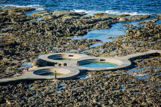 這裡的泉水清澈透明,溫度約在攝氏60-70度,屬略呈酸性的硫酸鹽氯化物泉,但無濃烈的硫磺味,帶有海水的鹹味,對人類皮膚無刺激性,洗後並不黏澀,為罕見的鹹水溫泉。