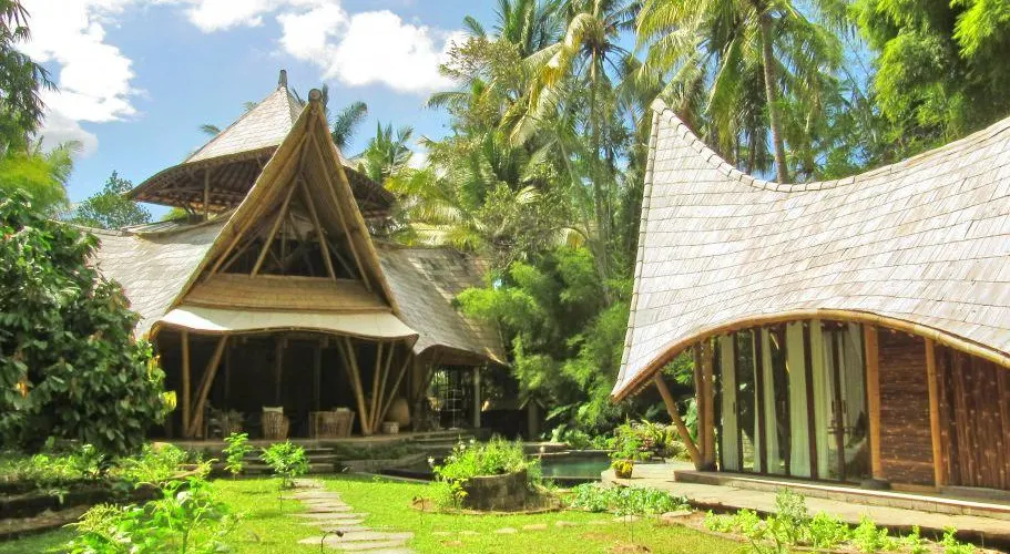 當地獨特建築,巴厘島當地設計師 ibuku 將設計的竹屋與當地景觀和諧的融為一體。在這裡遠離城市的喧囂,充分體會到大自然的清新,從緊張的生活中舒緩壓抑的心情,體會到造物者偉大的智慧。在綠意盎然中,感受到大自然的奇妙之處,無時無刻感受著花草樹木帶來的清新之感,在歡聲笑語中體會植物頑強的生命力。