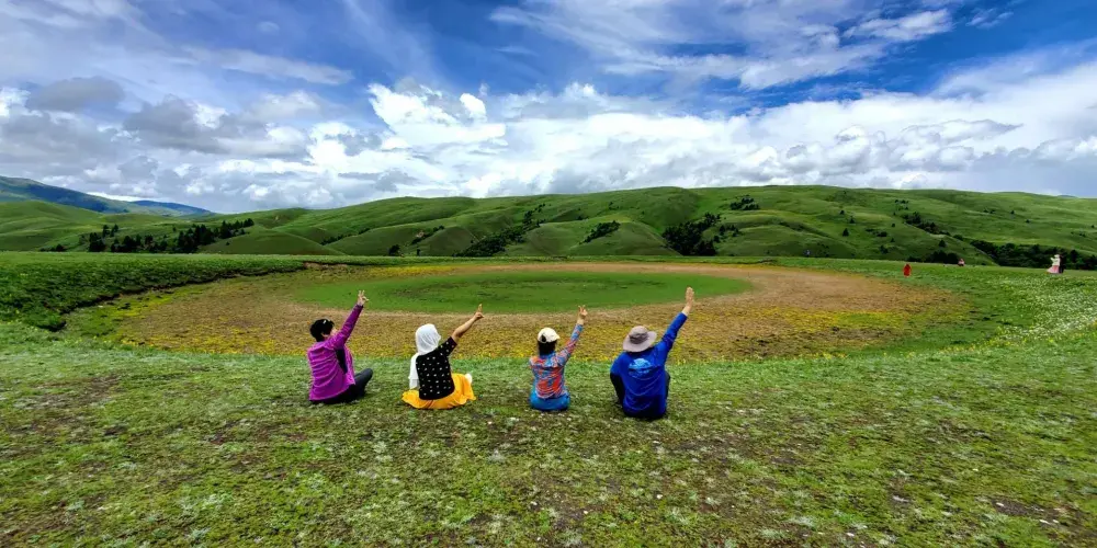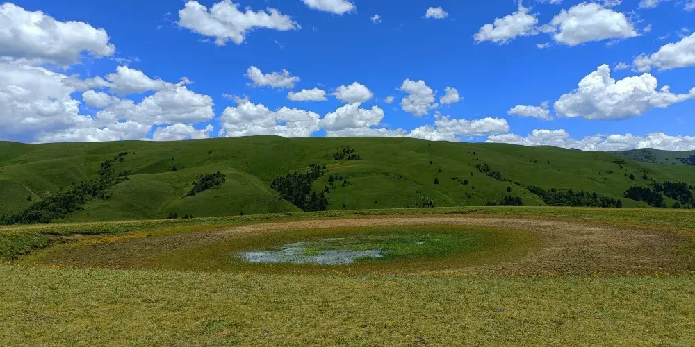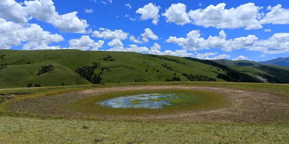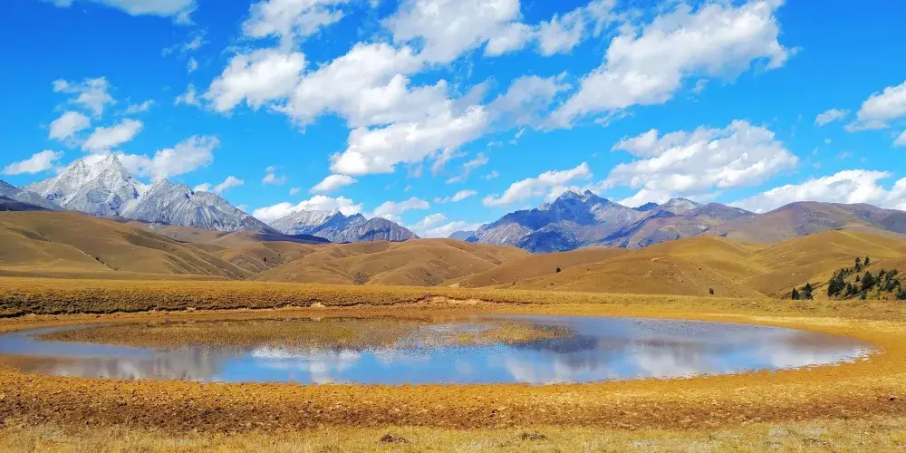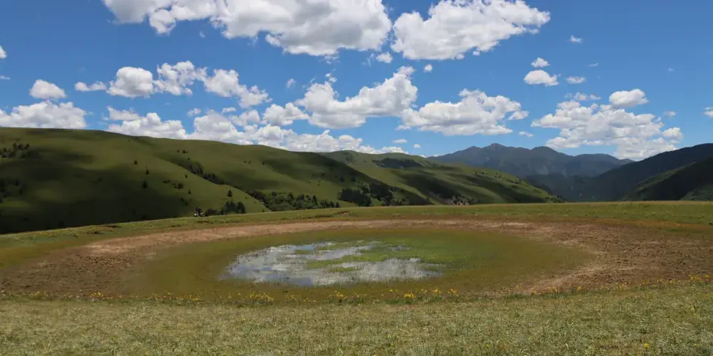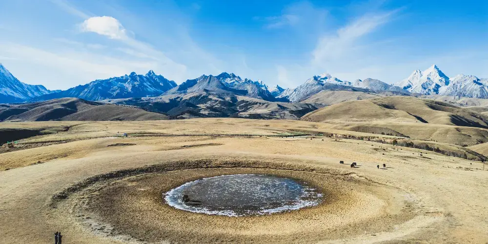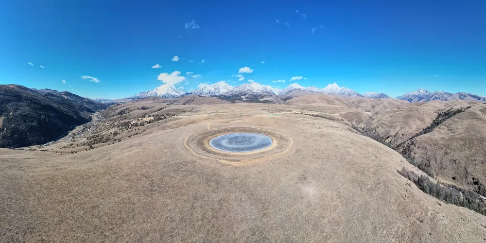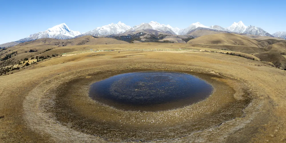 在川藏線沿路,有這麼一滴在地球表面的眼淚,靜謐地躺在格聶神山上,大家叫它格聶之眼。草原上,有個小小的水窪,倒映着藍天白雲,接納着格聶羣峯。格聶山作為藏民的神山,在山間有很多地熱温泉產生的小湖池,當中有處好像在大地之上,長着一衹奇妙的眼睛一般。