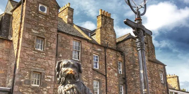 這座雕像是愛丁堡人為紀念一隻對主人忠心耿耿的小狗波比而建的。這隻小狗的主人死後被埋在了格萊菲教堂的墓園,小狗一直在墓園陪伴主人14年,最後被人發現死在了主人的墓旁,小狗被破例葬在了教堂的墓園,和主人永遠相伴。