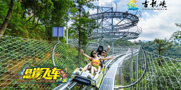 依託大峽谷、大森林、大瀑布的獨特地形地貌,在千米垂直落差的懸崖密林間,古龍峽景區自上而下、立體開發了五大項目組團:雲天玻霸、空中探險、大瀑布群、國際漂流、網紅河谷。作為國家體育旅遊示範基地、國際漂流賽場、國家體育總局指定賽道,景區共獲得12項世界紀錄認證,被譽為「漂流王中王 玻璃霸中霸」、「世界高空觀光新霸主」。從激流飛馳到森林探險到空中攬勝,在古龍峽可以一次玩轉水陸空。