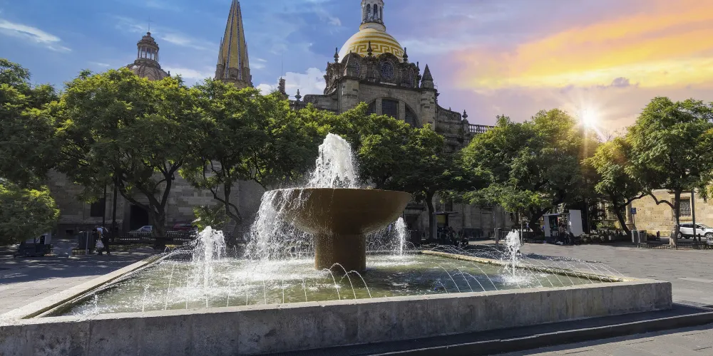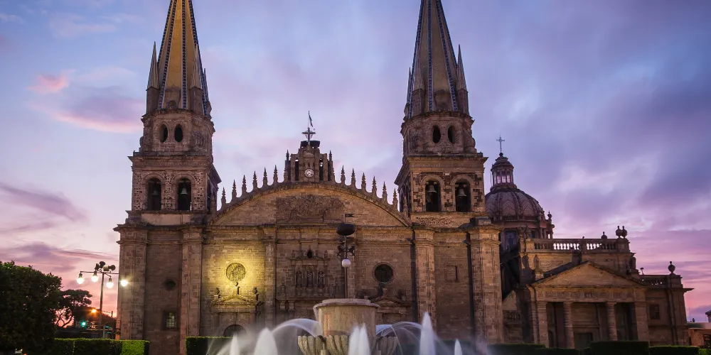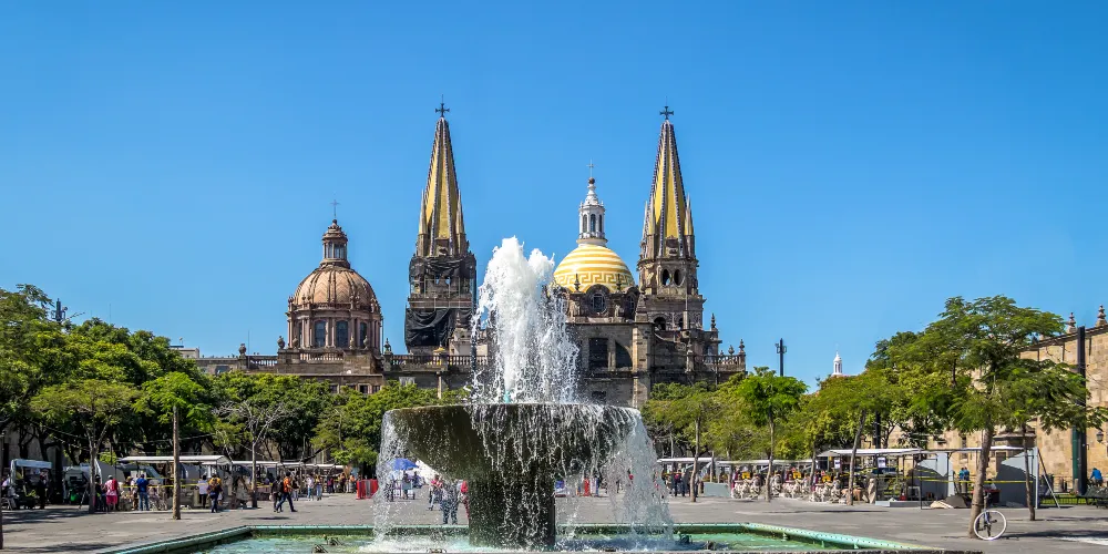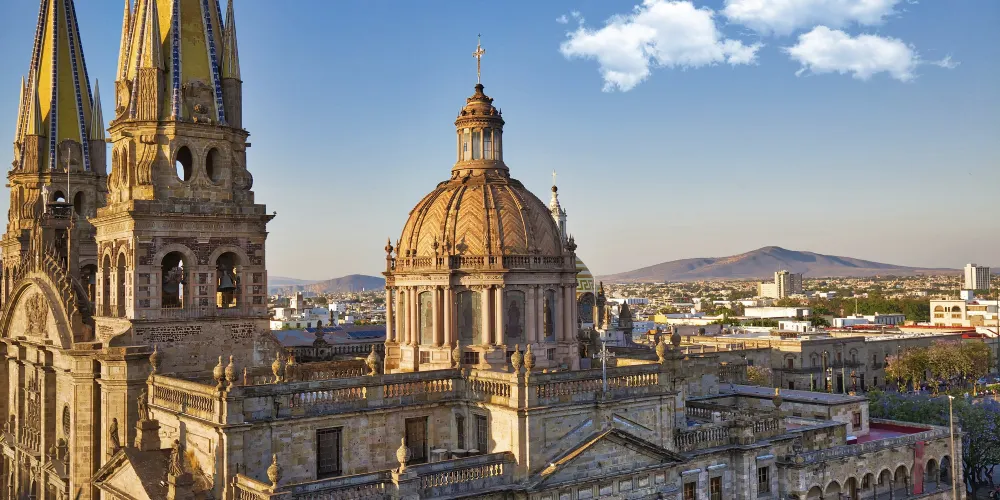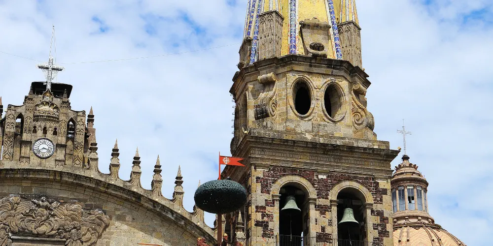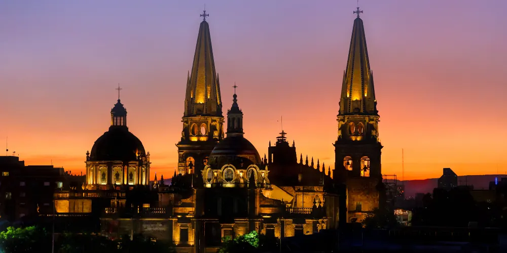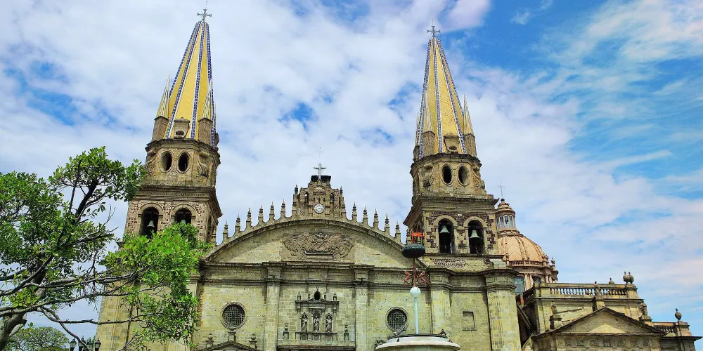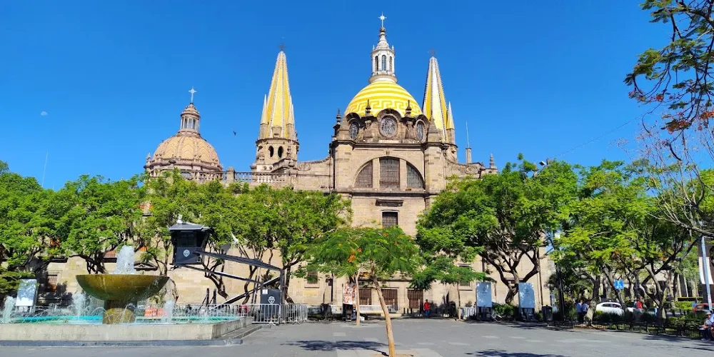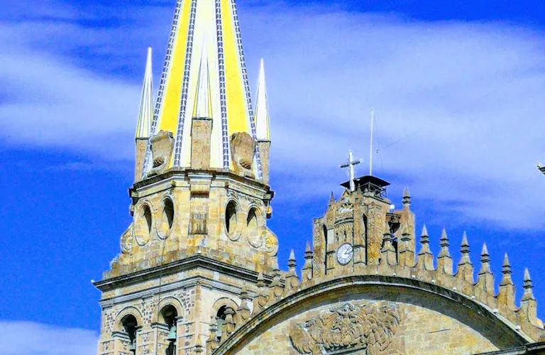瓜達拉哈拉大教堂是該市有名的歷史建築。教堂建造過程跨越三個世紀,形成了獨特的風格混搭:哥德式尖拱窗、巴洛克式立面雕飾與新古典主義穹頂相映成趣。標誌性的黃色尖頂在陽光下特別醒目,成為城市天際線的視覺焦點。