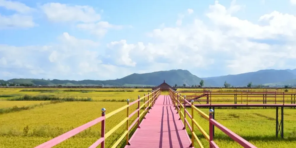 光東朝鮮族民俗村位於吉林省延邊朝鮮族自治州和龍市東城鎮中北部,海蘭江中游,平崗河谷平原下段,與龍井市毗鄰,光東村採取綠色主導產業與休閑旅遊農業相結合,民族文化特色相融入的模式,形成優勢互補,互相支撐的格局,積極發展農業觀光,民族特色餐飲,農家樂旅遊等項目,接待來回長白山的旅遊團隊,一是組織參觀新農村的村容村貌,二是安排遊客親自體驗並品嚐米腸,打糕等朝鮮族特色飲食,三是組織遊客參觀現代農業生產,例如:機械化插秧,秋收,稻田養鴨等。村裡設有民俗餐廳,一次性可容納300人同時用餐,在遊客用餐的同時能夠觀賞到朝鮮族的民俗婚禮表演影像,同時為遊客提供30餘套朝鮮族服飾供遊客免費拍照留念,飯店停車場內建有秋千,跳跳板等朝鮮族民俗遊戲供遊客體驗,參觀過程中游專業講解員帶您走進光東村,用熱情周到的服務為您講解朝鮮族的民俗文化,讓人走進老百姓人家,坐在大炕上聊家常,感受朝鮮族的熱情好客以及“炕大地小”的民俗文化。