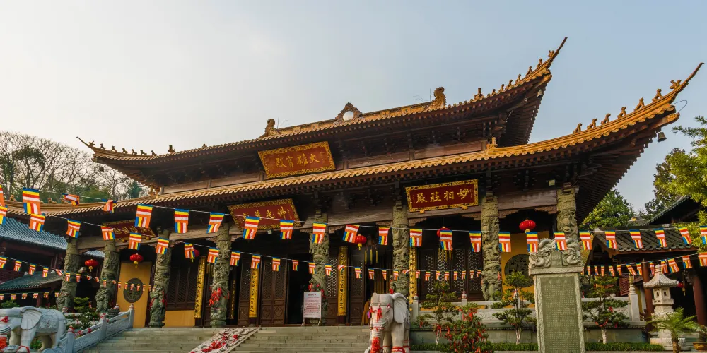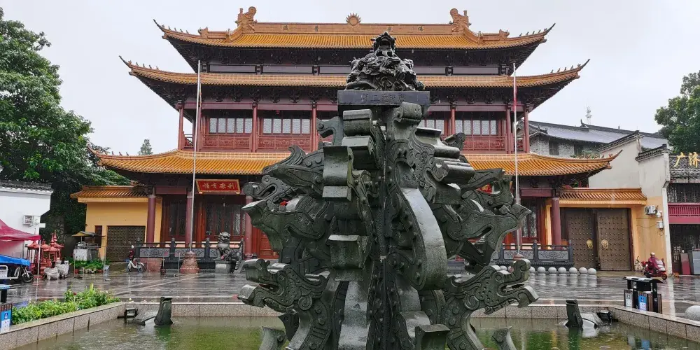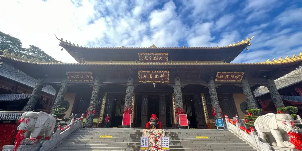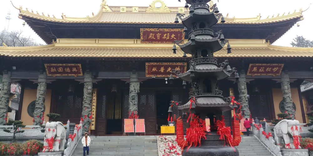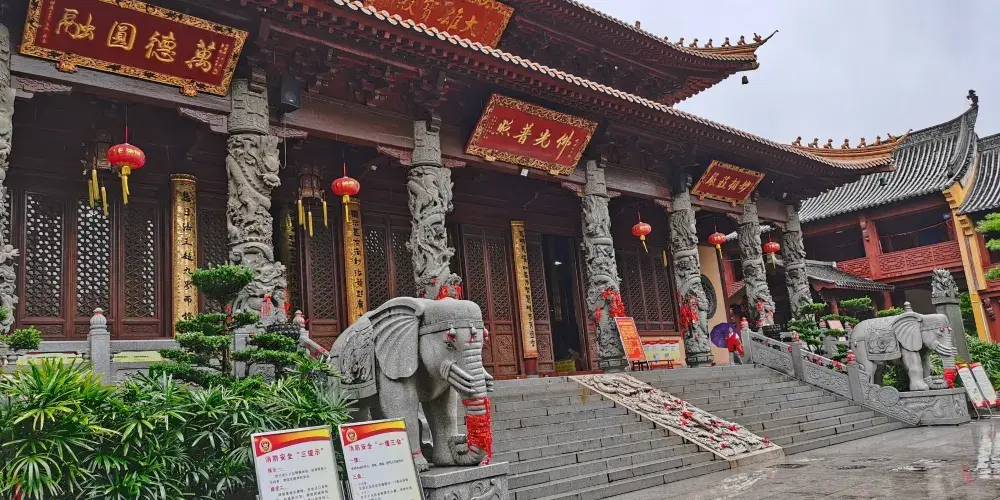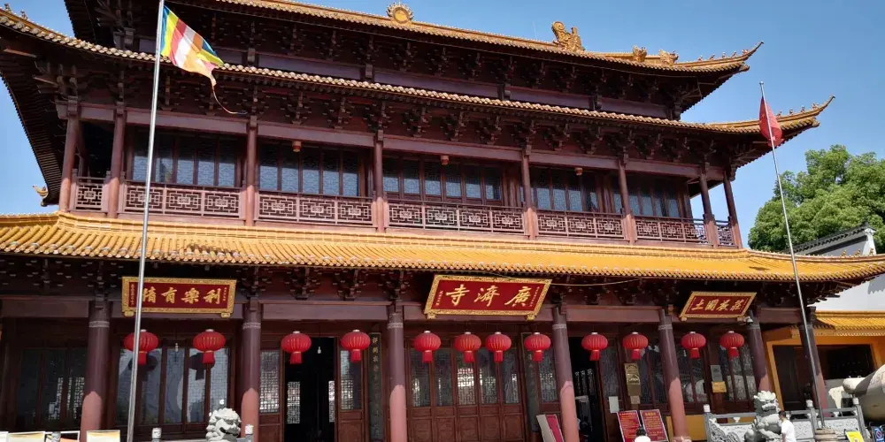 廣濟寺的殿宇依山而建,自下而上有藥師殿、大雄寶殿、地藏殿、廣濟寺塔,共有88級台階,爬山禮佛的體驗令人彷彿置身於九華山。