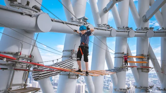 4.8 分266 則評價距離市中心 距離市中心3.5公里雲端漫步作為阿爾法探索樂園入門嚐鮮項目,是廣州塔內僅有可在鋼結構之間凌空環塔一週的高塔鏤空步道,帶你在325米的户外高空,以空前的獨特視界俯瞰羊城,以每步奪目之美開啟心跳加速的觀光旅程。夜幕降臨。在此與流光溢彩的東西雙塔隔空相望,讓璀璨珠江盡收眼底,收穫讓人心動的幻彩與浪漫。凌空探險-綠線項目位於188米處,初級極限凌空探險項目,將讓你淺嘗高空極限探險的樂趣。在188米高空中的初級繩索穿越項目,包括懸浮小島、立式天梯、藤網穿越等十幾種項目,更適合初級極限遊樂愛好者體驗,淺嘗置身半空的暢快感受。購買陪同票還可以陪伴孩子共同走過凌空探險線路中最長的單軌鋼索,鍛鍊孩子的膽量,拉進親子間的距離,讓孩子在獲得快樂遊戲的同時,學習到成長與挑戰的意義,提高小童的意志力、執行力、判斷力,最後一起打卡廣州的城市中軸線,留下一張張温馨的親子合照,珍藏這份難忘的親子時光。凌空探險-藍線項目,該項目位於198米處,是難度適中的凌空探險項目,是你進階高空挑戰的不二之選。在198米的高空線路上,攀巖牆、忍者橋、獨木橋、迴旋滾筒等十幾個進階的定製繩索穿越項目,將帶你開啟一段無與倫比的挑戰自我之旅。整個線路遊玩半小時,關卡難度適中,高空體驗感強,是針對難度有一定要求,但想逐步加大難度的理想選擇。凌空探險-紅線項目,該項目位於298米處,超刺激定製穿越項目,將讓你感受巨大垂直落差所帶來的震撼體驗。位於298米高空,將通過攀爬、翻越等方式體驗包括飛盪藤椅、懸空吊橋、超級滑翔機等十幾種超刺激定製化繩索穿越項目,不僅要克服高空的內心恐懼,更是對體力與技巧的比拼,綜合難度高,適合有一定運動基礎的體驗者。門票 HKD 441+