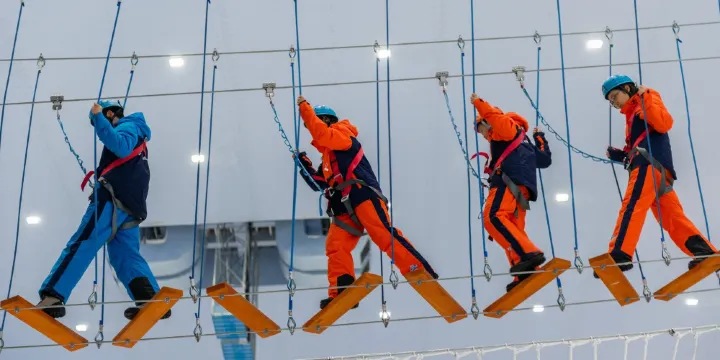2、探險步道集趣味、娛樂、拓展功能於一體,在高空、速度、力量、毅力等元素的挑戰中,感受感官上的刺激和闖關成功的成就感。(遊玩要求:身高須高於1.4米且體重少於100KG的遊客方可參與)