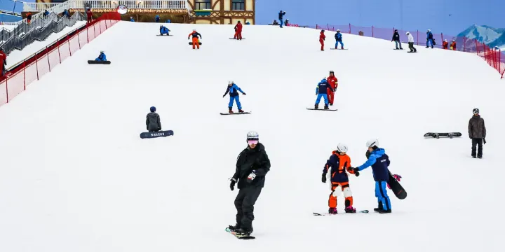 1、初級道(企鵝道/單板練習道)雪道寬闊,寬度約35米,長度約70米,坡度約13.6°,比一般單板練習雪道稍陡。初學者需先在平地區域練習穿板,掌握基本站姿和停止技巧後,再從上端大膽嘗試解鎖新動作。